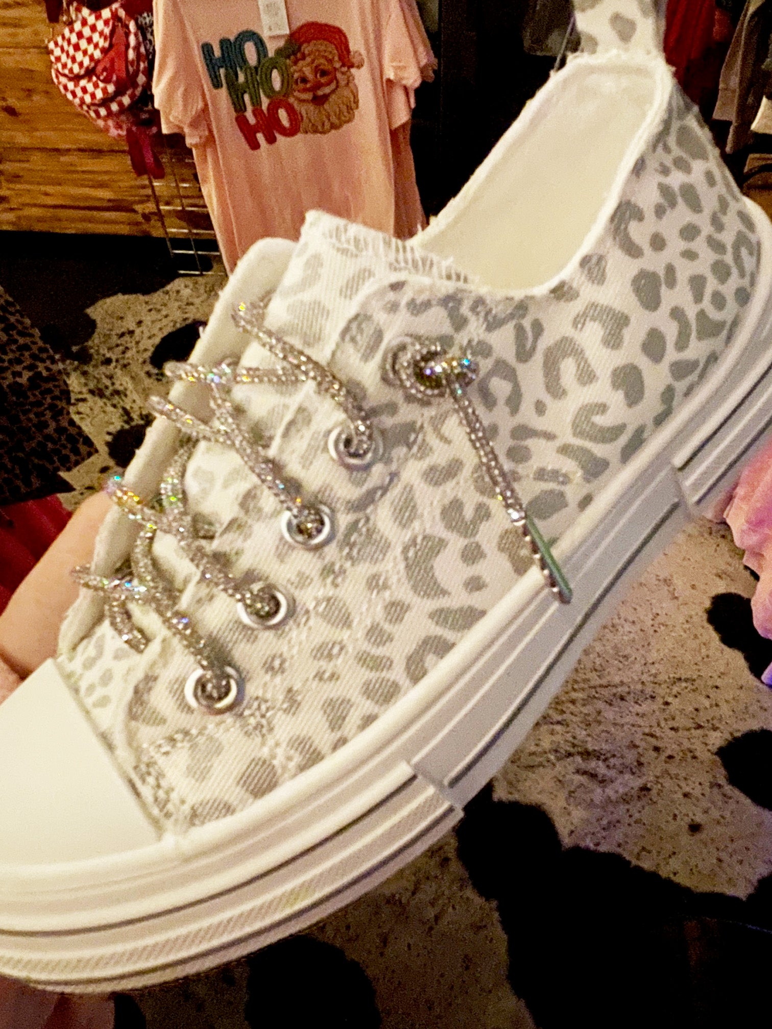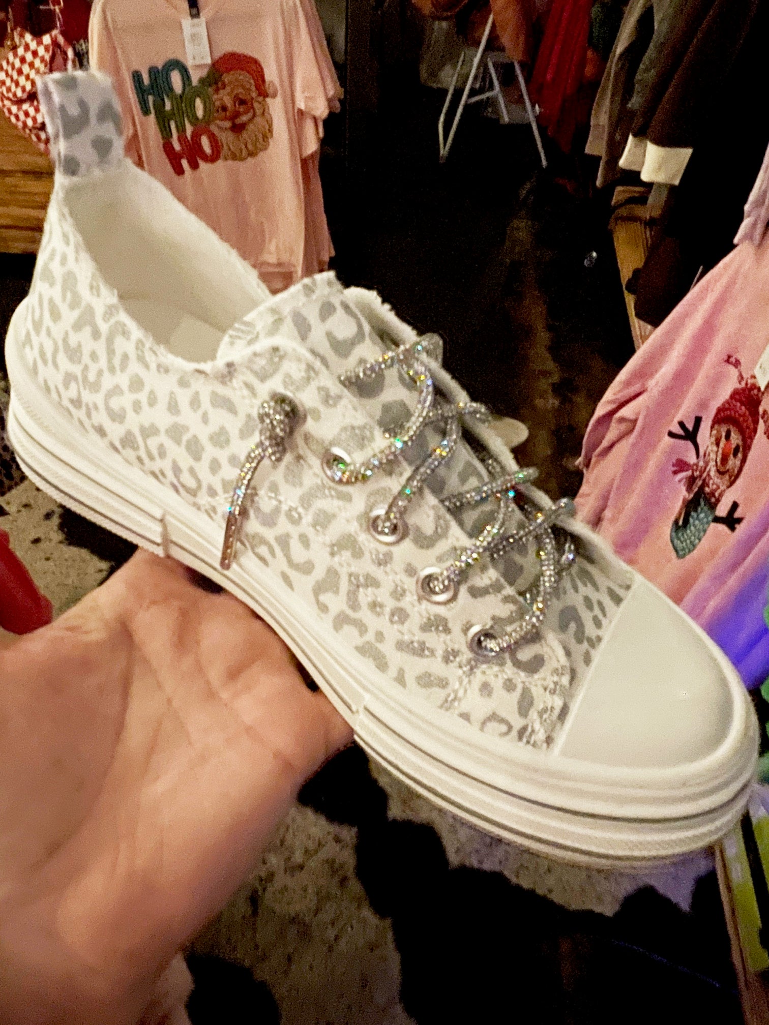 One of our best-selling sneakers, this is the Aman silver leopard by Very G! So cute, playful neutral silver leopard and white make this pair with anything. Super sparkly silver laces. True to size. NOTE: They are silver and white, not cream, last pic is a better depiction of color.